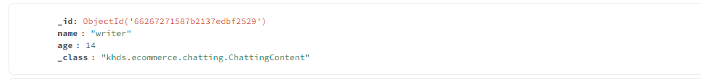 여기서 문제가 하나 있다. _class라는 필드는 원하지 않았는데 자동으로 패키지 정보와 함께 들어가 있다. 이에 대한 해결책은 아래를 확인하길 바란다.