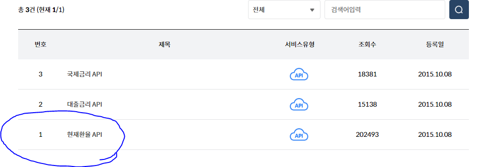 3개의 정보를 조회할 수 있으며 1번 현재환율 API를 사용할 것이다.