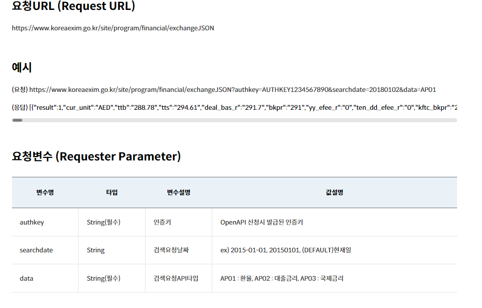 이를 위해 한국수출입은행 환율 정보 조회 API를 사용하고자 한다.
