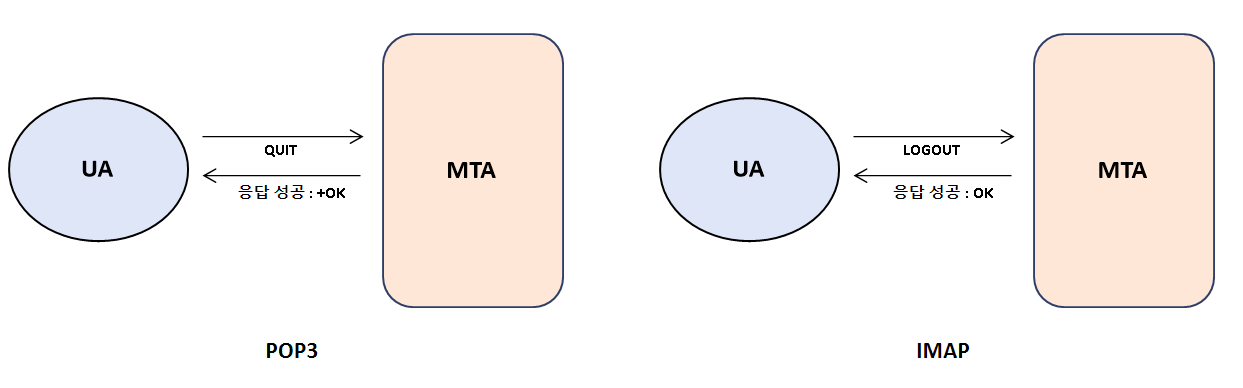 POP3는 QUIT, IMAP는 LOGOUT를 명령어를 입력하여 연결을 종료한다.