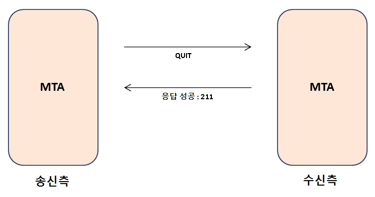 | QUIT | 더 이상의 전송 메시지가 없음을 통지하여 SMTP 세션을 종료한다. |