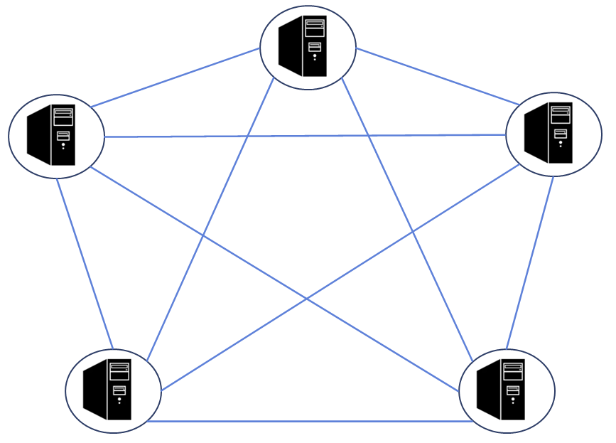 메시 토폴로지는 망형 토폴로지라고도 하며 그물망처럼 연결되어 있는 구조이다.