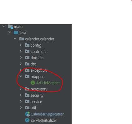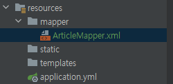 화면과 같이 mapper 패키지를 만들고 ArticleMapper 인터페이스를 만들었다. 여기서 중요한 점이 인터페이스가 Mapper라는 것을 인식할 수 있게 @Mapper을 꼭 붙여주어야 한다. 그래야 @MapperScan에서 찾을 수 있다. 만약 스프링 부트가 아닌 스프링을 사용한다면 root-context.xml 파일에 설정을 해주어야 한다.