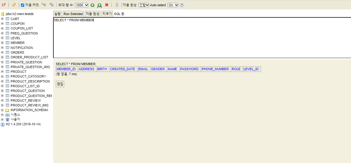 기본적으로 서버를 다시 실행할 때마다 데이터는 초기화되고 빈 테이블만 남게된다.