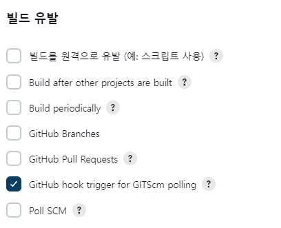 이제 jenkins에 만든 레포에 구성에 들어가서 빌드유발에 GitHub hook trigger for GITScm polling 를 체크하고 저장을 누른다. 그렇게 하면 github repository에 지정한 branch에 push 또는 Merge를 하면 자동으로 jenkins 상에서 build가 이루어진다.