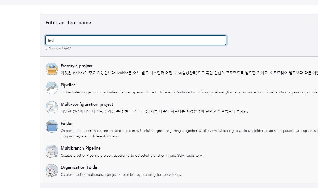 제목을 정하고 Freestyle project를 클릭한다.