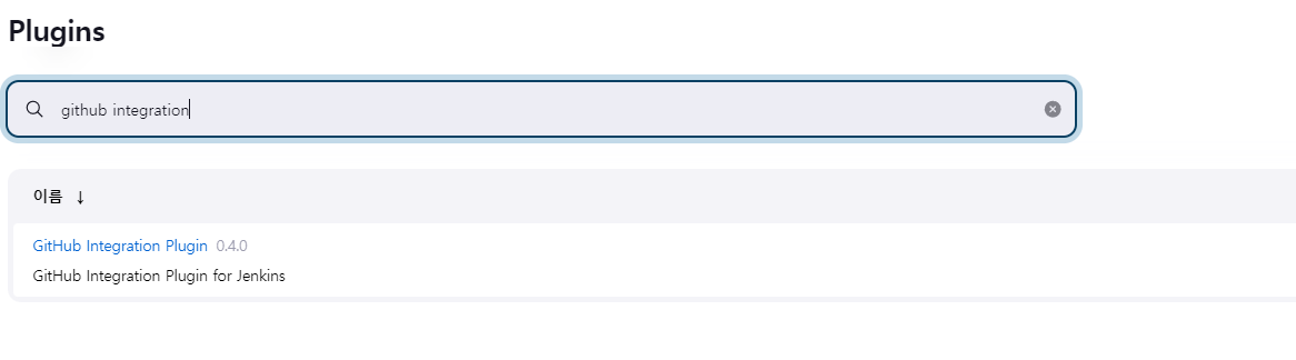 먼저 Jenkins 관리 - 플러그인 관리로 들어가서 github integration plugin을 검색한 후 다운받은 후 재시작 해준다.