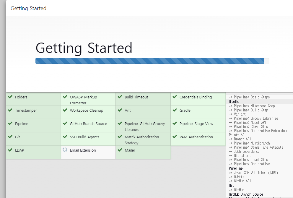 위와 같이 실행이 확인 된경우 aws 인스턴스 ip의 8000 포트로 젠킨스에 들어가보자. 아래와 같이 뜰 것이다.