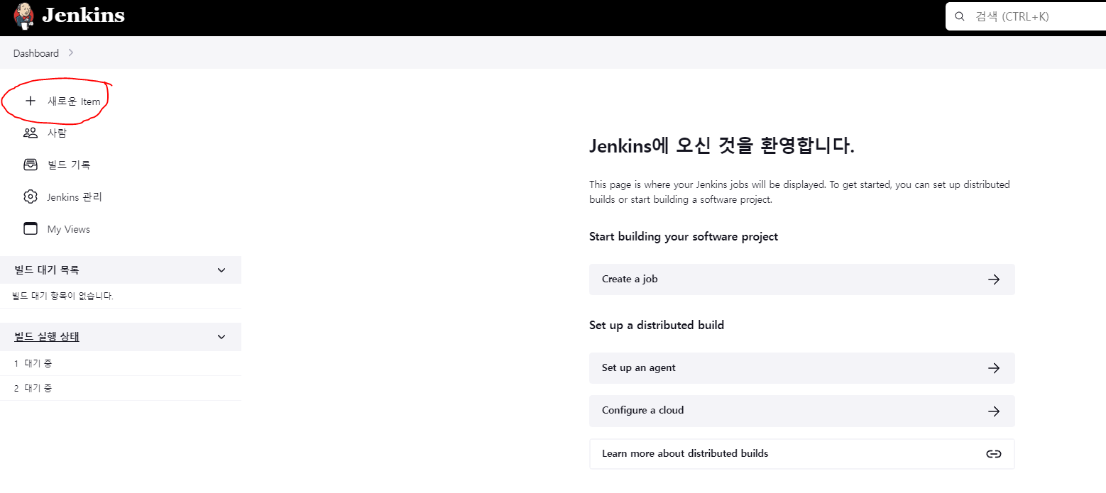 이제 ci,cd를 원하는 repository를 등록해보겠다. 아래의 사진에 새로운 Item을 클릭한다.