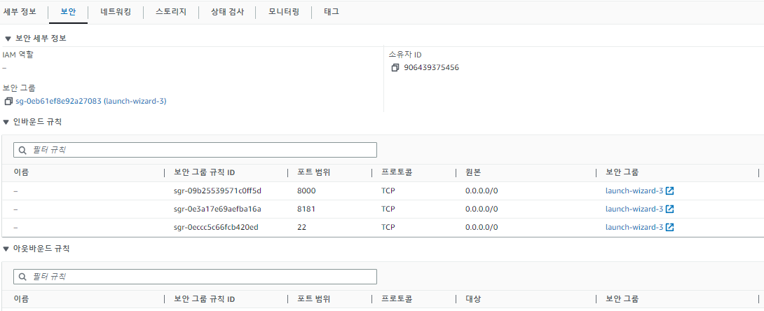 그 다음 보안 그룹을 설정해야 한다.