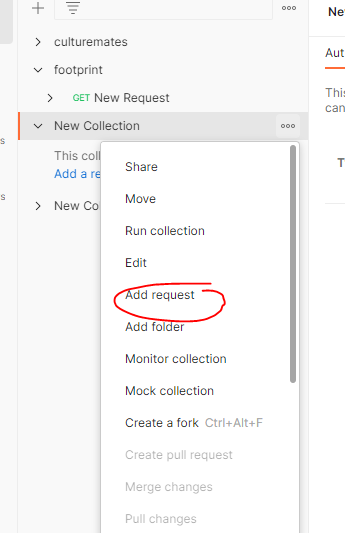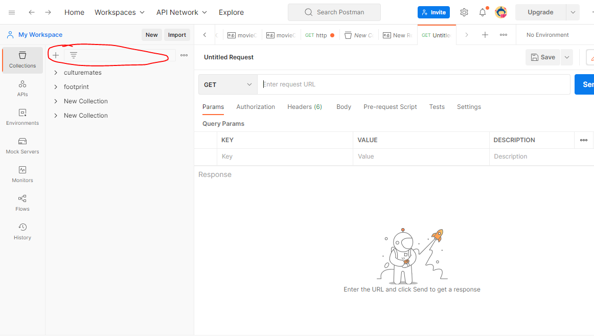 생성한 후 해당 workSpace로 들어가서 새로운 Collection을 생성한다. collection은 하나의 프로젝트 단위라고 생각하면 편하다.