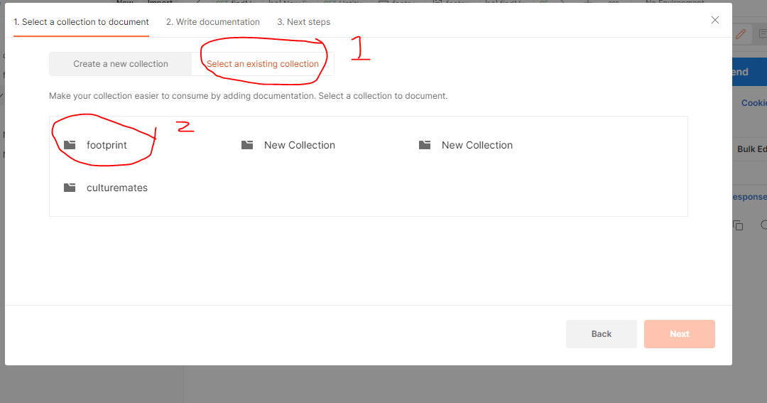 아래와 같이 나올텐데 미리 작성했던 collection을 클릭하여 다음으로 넘어간다.