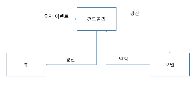 참고사항으로 MVC 패턴에서 파생된 MVP, MVVM 패턴도 있으며 이들은 C가 P(presenter), VM(view model)로 교체된 패턴이다.