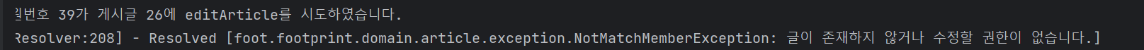 예외가 발생하면 아래와 같이 시도하였다는 로그만 출력되고 throw로 지정한 메시지가 출력될 것이다.