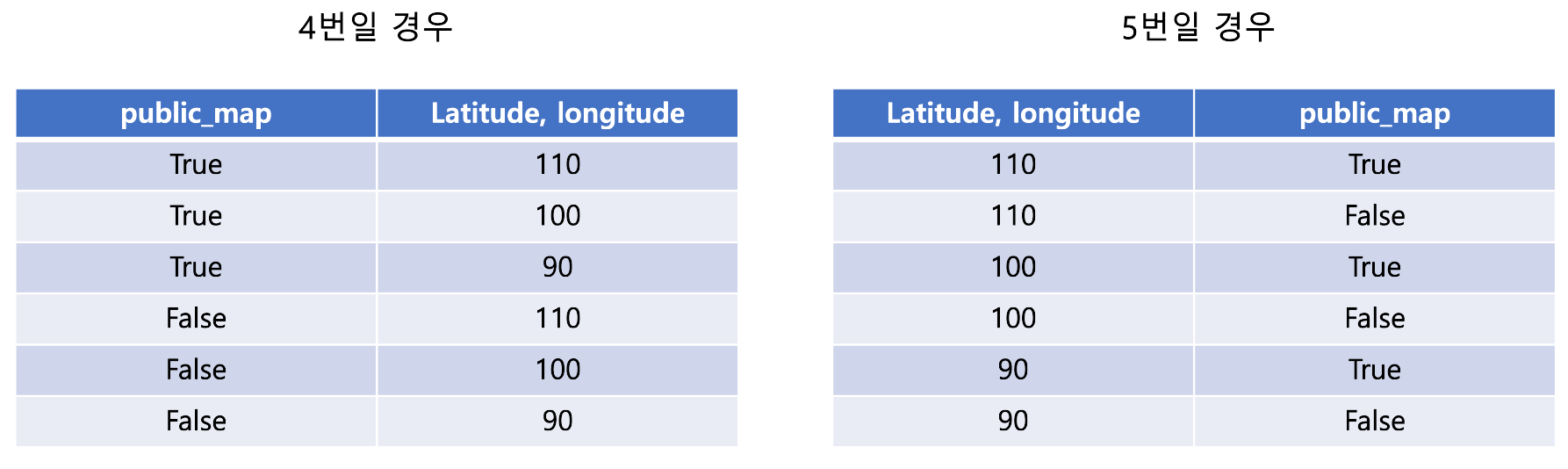 5. latitude, longitude, public_map의 순서로 인덱스를 가진 경우